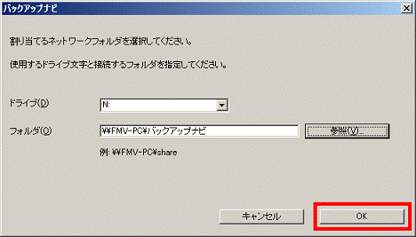(「バックアップナビ」フォルダーにデータを保存する場合) - 「OK」ボタンをクリックします。