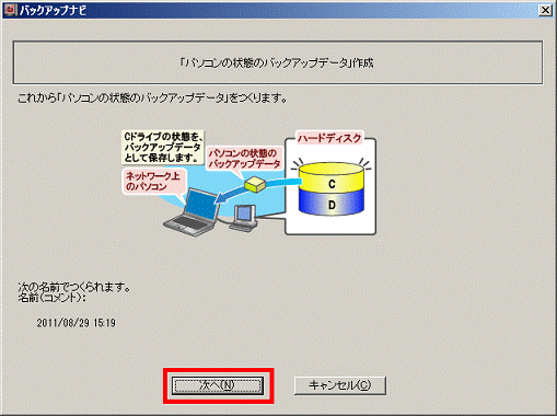 - 「「パソコンの状態のバックアップデータ」を作成します。」と表示されます。