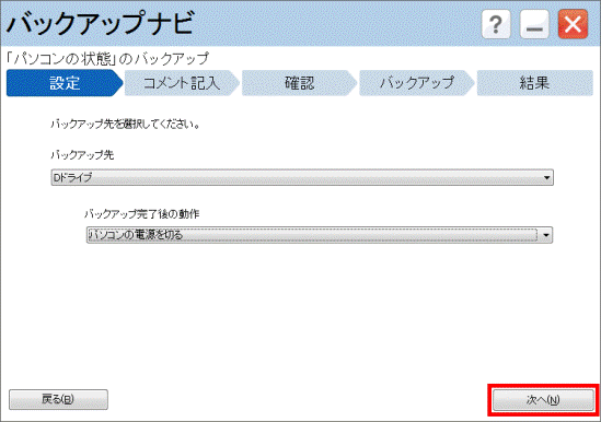 バックアップナビについての説明をよく読み、「次へ」ボタンをクリックします。