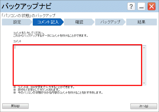 - コメントとは、バックアップのデータが複数あるときに、区別するためのものです。