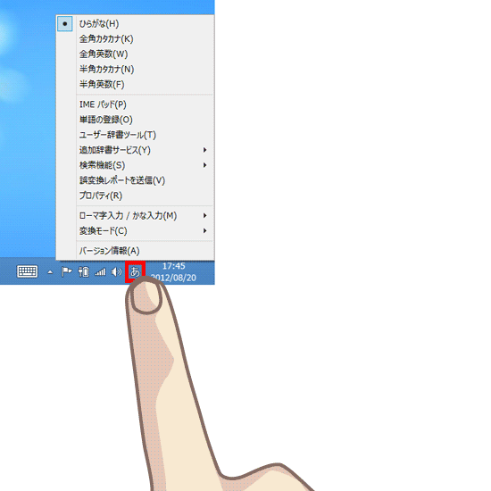 項目を指でトントンとたたく動作です。ダブルクリックするのと同じです。 - 長押し