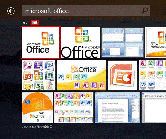 - 検索結果で「画像」をクリックまたはタップすると、画像の検索結果が表示されます。見たい画像をクリックまたはタップします。