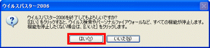 「ウイルスバスター2006を終了してもよろしいですか?」と表示されます。 - 「はい」ボタンをクリックします。