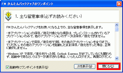 - 「FM かんたんバックアップのワンポイント」が表示されます。