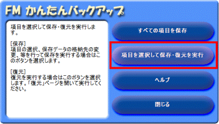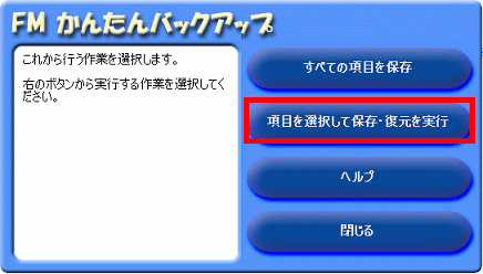 - 「FM かんたんバックアップ」のメニューが表示されます。