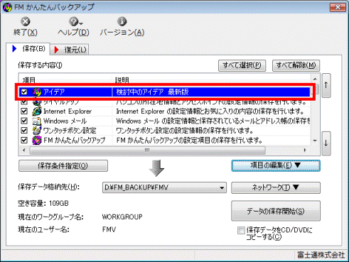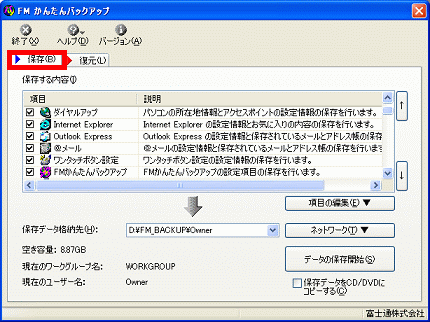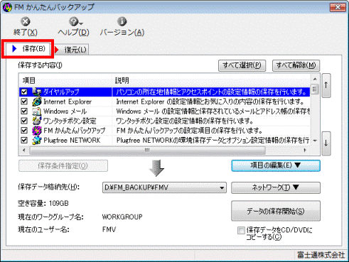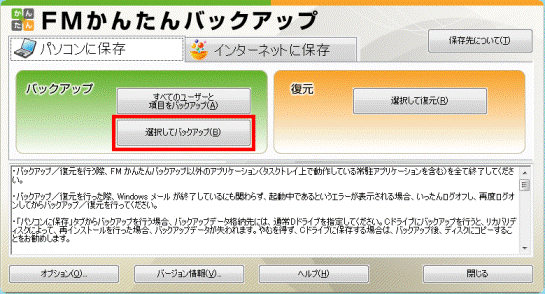 [FMかんたんバックアップ] バックアップと復元の方法を教えてください。(2009年春モデル〜2009年夏モデル)(新しいウィンドウで表示)