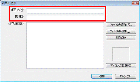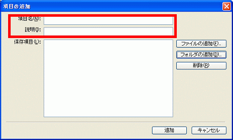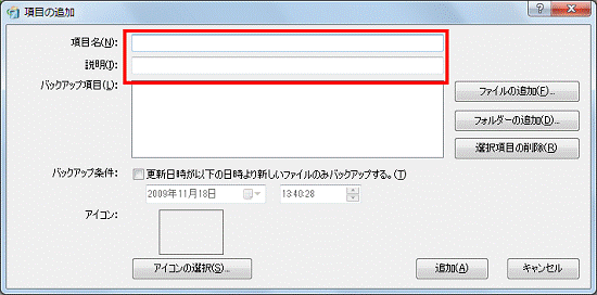 ファイル名など、バックアップ項目のタイトルを入力します。 - 説明