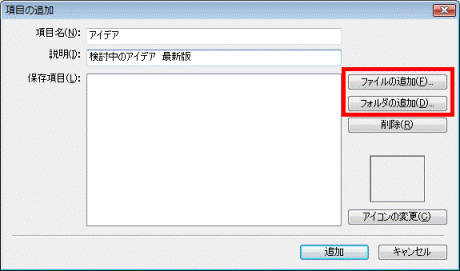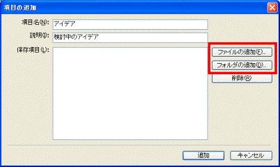 - 「ファイルの追加」(または「フォルダの追加」)ボタンをクリックします。