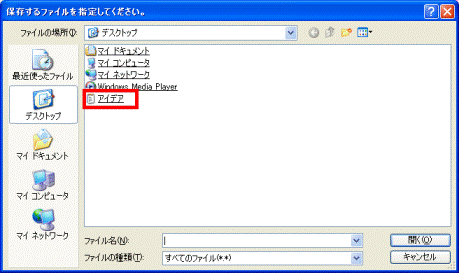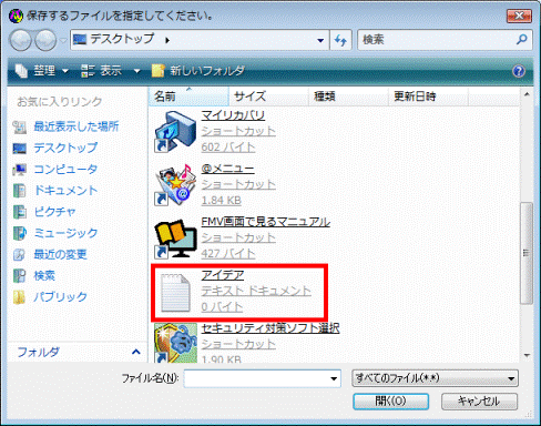 「お気に入りリンク」の一覧からファイルが格納されている場所をクリックし、追加するファイルをクリックします。