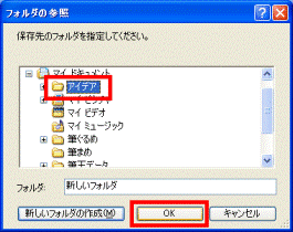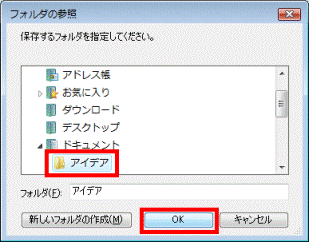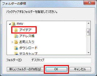 「デスクトップ」など、ファイルが格納されている場所をクリックし、追加するフォルダをクリックしてから、「OK」ボタンをクリックします。