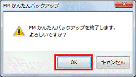 「OK」ボタンをクリックし、FMかんたんバックアップを終了します。