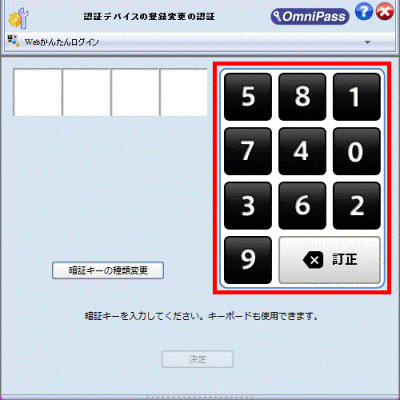 (暗証キーが数字の場合) - 「決定」ボタンをクリックします。