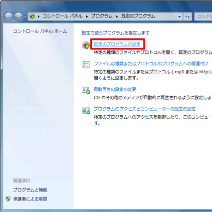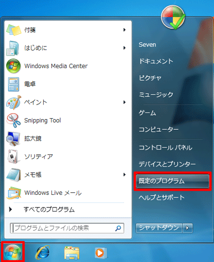 - 「スタート」ボタン→「既定のプログラム」の順にクリックします。