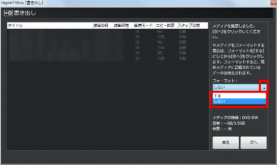 - 録画番組を書き出すディスクにデータが入っている場合、ディスクのフォーマットを行うとすべてのデータが削除されます。