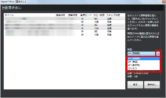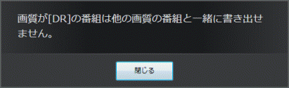 - 「画質が[DR]の番組は他の画質の番組と一緒に書き出せません。」