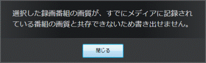「閉じる」ボタンをクリックし、録画番組を選択しなおしてください。![画質が[DR]の番組は他の画質の番組と一緒に書き出せません。](../private/201507/0600000001/149.gif)