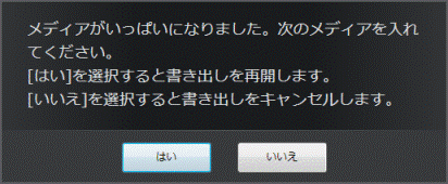 そのため、DVD-VR形式で書き出しされたディスクには、AVCREC形式で録画番組を書き出しできません。また、逆も同じです。 - 「メディアがいっぱいになりました。」または「ディスクがいっぱいになりました。」
