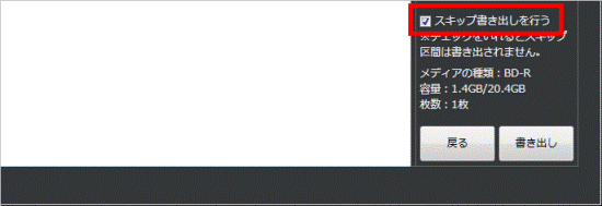 「スキップ書き出しを行う」が表示される場合は、「スキップ書き出しを行う」をクリックしチェックを付けると、オートチャプターで「再生」に設定されているチャプターのみを書き出せます。