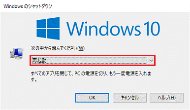 【Alt】キーを押しながら、【F4】キーを押します。 - 「Windows のシャットダウン」が表示されます。