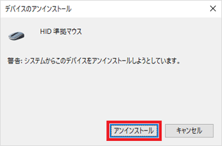 - 「HID 準拠マウス」が複数表示されている場合で、「アンインストール」または「OK」ボタンをクリックした後もマウスを操作できる場合は、