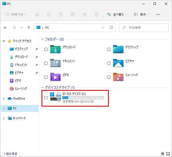 - 「ローカルディスク(C:)」をダブルクリックします。