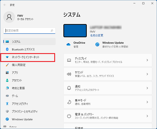 」(ナビゲーションを開く)→「ネットワークとインターネット」の順にクリックします。 - 「ネットワークとインターネット」と表示されます。