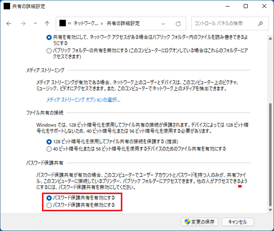 重要「パスワード保護共有」を有効にした場合は、アクセスされる側のパソコンのユーザーアカウントにパスワードが必要です。