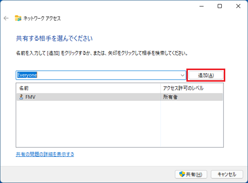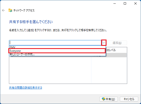 」ボタンをクリックし、表示される一覧から「Everyone」をクリックします。