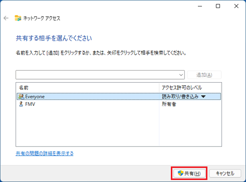 共有したいパソコンのOSがWindows 11以外の場合は、次のQ&Aをご覧になり、共有の設定を行ってください。