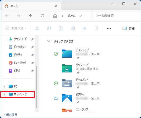 「スタート」ボタンを右クリックし、表示されるメニューから「エクスプローラー」をクリックします。 - 「ネットワーク」をクリックします。