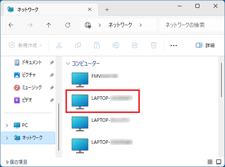 - 選択したパソコンで共有したフォルダーが表示されます。