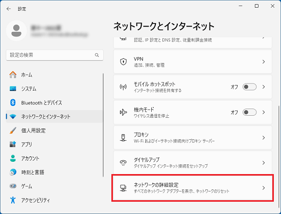 アドバイス「ネットワークの詳細設定」が表示されていない場合は、画面を下にスクロールすると表示されます。