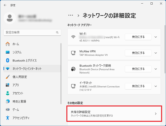 [Windows 11] ワークグループやコンピューター名を設定する方法を教えてください。手順3共有オプションを有効にする