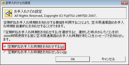 アドバイス「定期的なお手入れ時期をお知らせする」と、「定期的なお手入れ時期をお知らせしない」が表示されているときは、「定期的なお手入れ時期をお知らせする」をクリックして、手順4.に進みます。