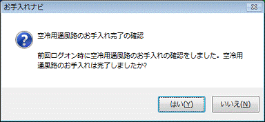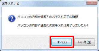 お手入れが完了している場合は、「はい」ボタンをクリックします。