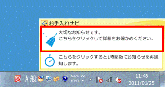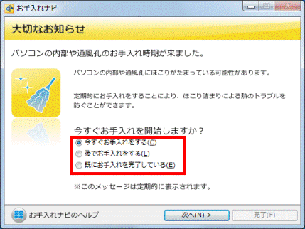 「今すぐお手入れを開始しますか?」の項目から次のいずれかをクリックします。