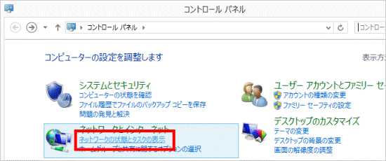 - 「ネットワークの状態とタスクの表示」をクリックします。