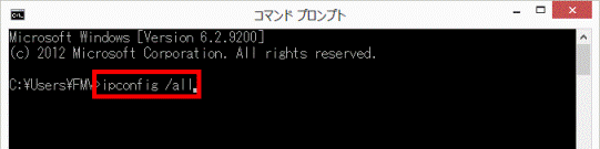 アドバイス「ipconfig」と「/all」の間では、半角で【空白(スペース)】キーを1回押します。