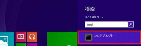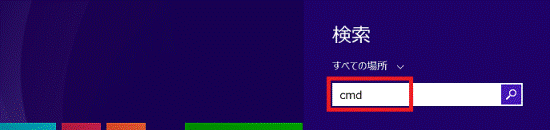 デスクトップの場合は、画面の右下にマウスポインターを移動し、チャームが表示されたら「スタート」をクリックします。 - スタート画面で、次のとおり入力します。