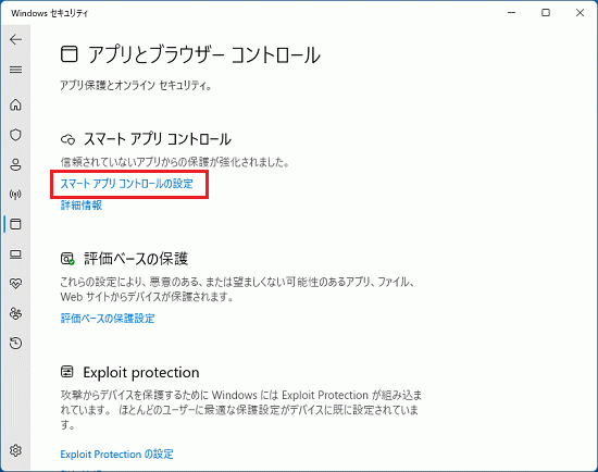 - スマートアプリコントロールについて、詳しくは次のマイクロソフト社のホームページをご覧ください。