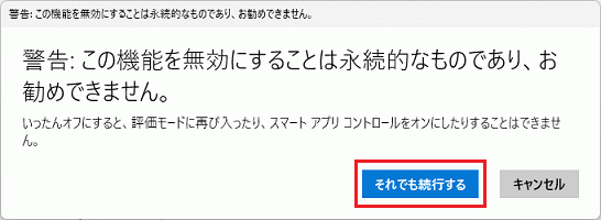 - スマートアプリコントロールをオフにすると、同じパソコンのユーザーもすべてオフになります。