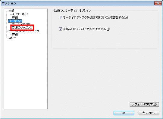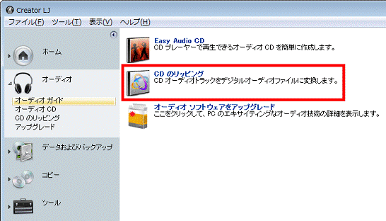 画面左側の一覧から、「音楽のリッピング」をクリックします。