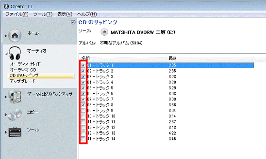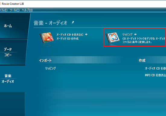 [Roxio Creator LJ / LJB] 音楽CDからパソコンに音楽を取り込む方法を教えてください。