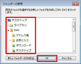 そのときは、お好みの保存場所をクリックし、「OK」ボタンをクリックします。