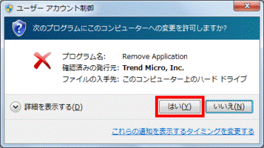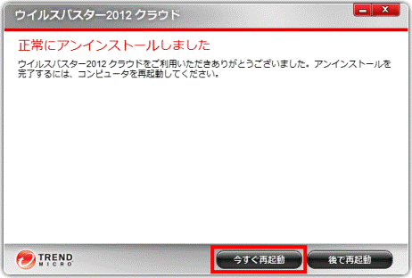 「ウイルスバスター2012 クラウドの削除」と表示されます。