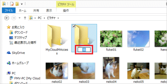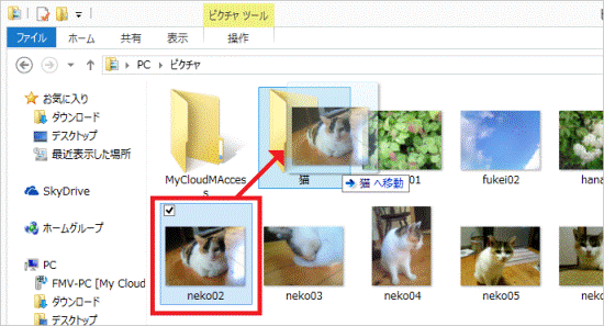 - 分類したい写真をドラッグし、マウスポインターを、フォルダーまで動かします。