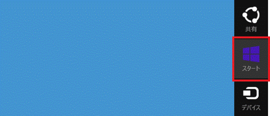 - 画面の右下にマウスポインターを移動し、チャームが表示されたら「スタート」をクリックします。