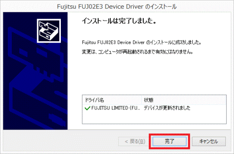 - FUJ02E3 デバイスドライバーがアンインストールされます。