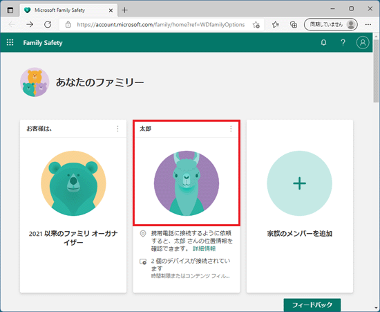 - Microsoft Edgeが起動し、「あなたのファミリー」と表示されます。