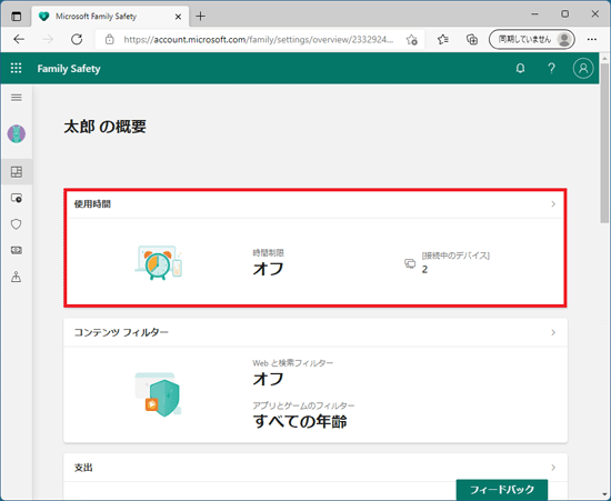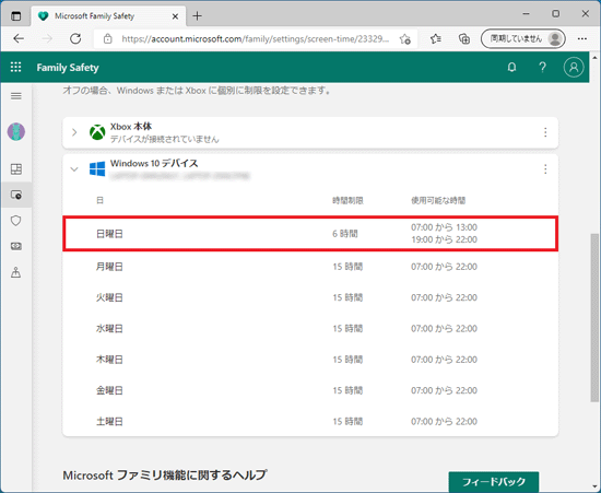 アドバイス「デバイスを接続する」と表示されている場合は、子ども用のアカウントで使用時間を制限するパソコンにサインインしたことがあることを確認してください。